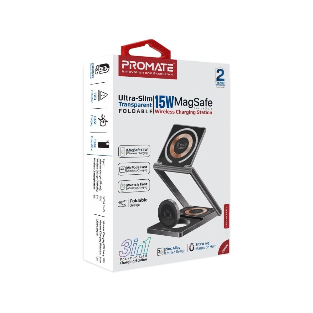 تعد محطة الشحن LucidFold-Trio من Promate رفيق السفر المثالي، حيث تتميز بتصميم نحيف للغاية وقابل للطي . مع LucidFold-Trio، يجتمع الراحة مع الابتكار، مما يضمن لك البقاء أجهزتك مشحونة أينما كانت رحلتك.