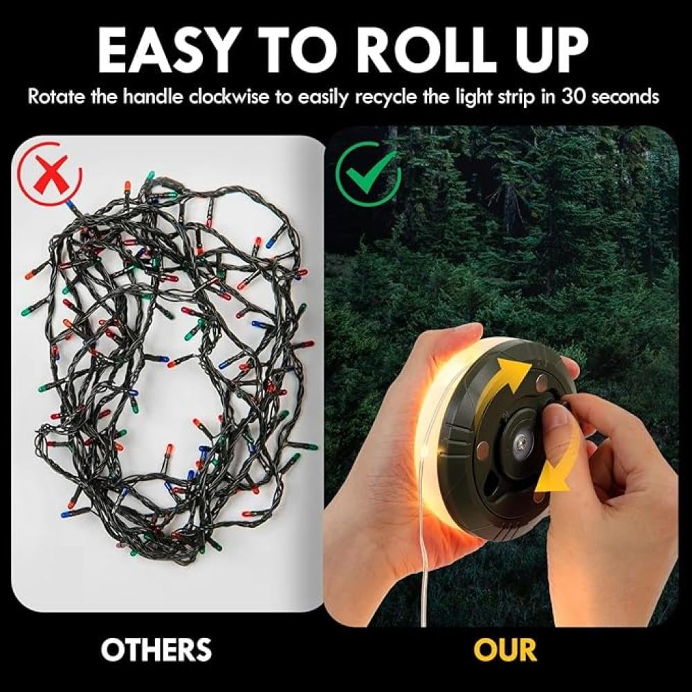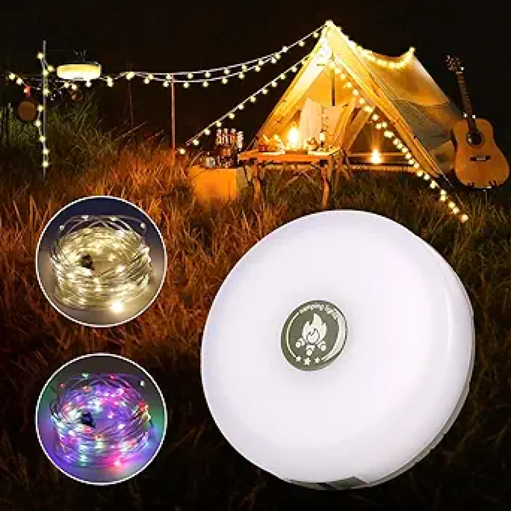 - اضاءه تخييم ذكية بتقنية 2 في 1، تعمل كفانوس وسلسلة إضاءة في نفس الوقت لتغطية احتياجاتك داخل الخيمة أو في الهواء الطلق