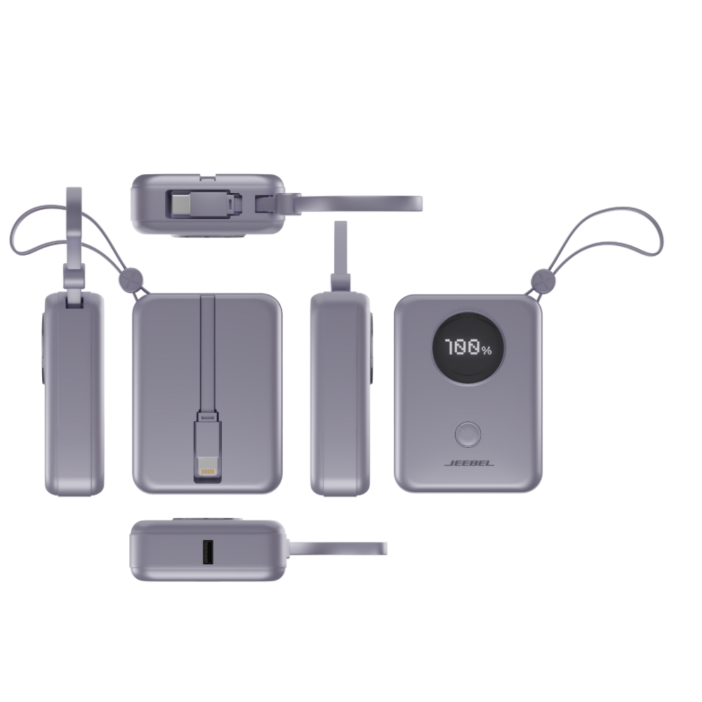 تمتع بالشحن السريع والأنيق مع باور بانك بشاشة من Jeebel بسعة 10000mAh، بتصميم صغير وخفيف يناسب الجيب أو الحقيبة. مزود بكابلات Lightning وType-C مدمجة، وشاشة رقمية لعرض نسبة الشحن بدقة. احصل على طباعة مجانية على البطارية لتجعله شخصياً أو مثالياً كهدية.