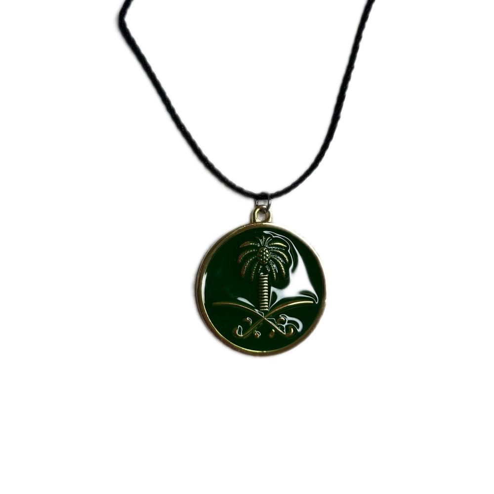 تعليقة سيارة - سيفين ونخلة دائري ذهبي واخضر