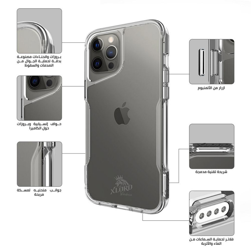 - جراب مقاوم للصدمات ذو تصميم جديد بأنحناءات جانبية لسهولة الحمل, يأتي مدمج مع شريحة تقنية وحمايه للسماعات الخارجية من الاتربه والماء حاصل علي براءه اختراع رقم
