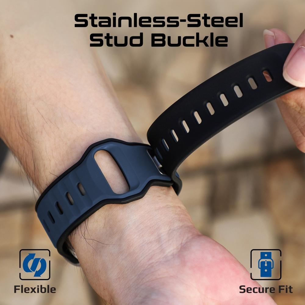 • مصنوع من السيليكون المتين: السوار مصنوع من سيليكون عالي الجودة يوفر راحة فائقة ومرونة مثالية، ما يجعله خيارًا مناسبًا للاستخدام اليومي.