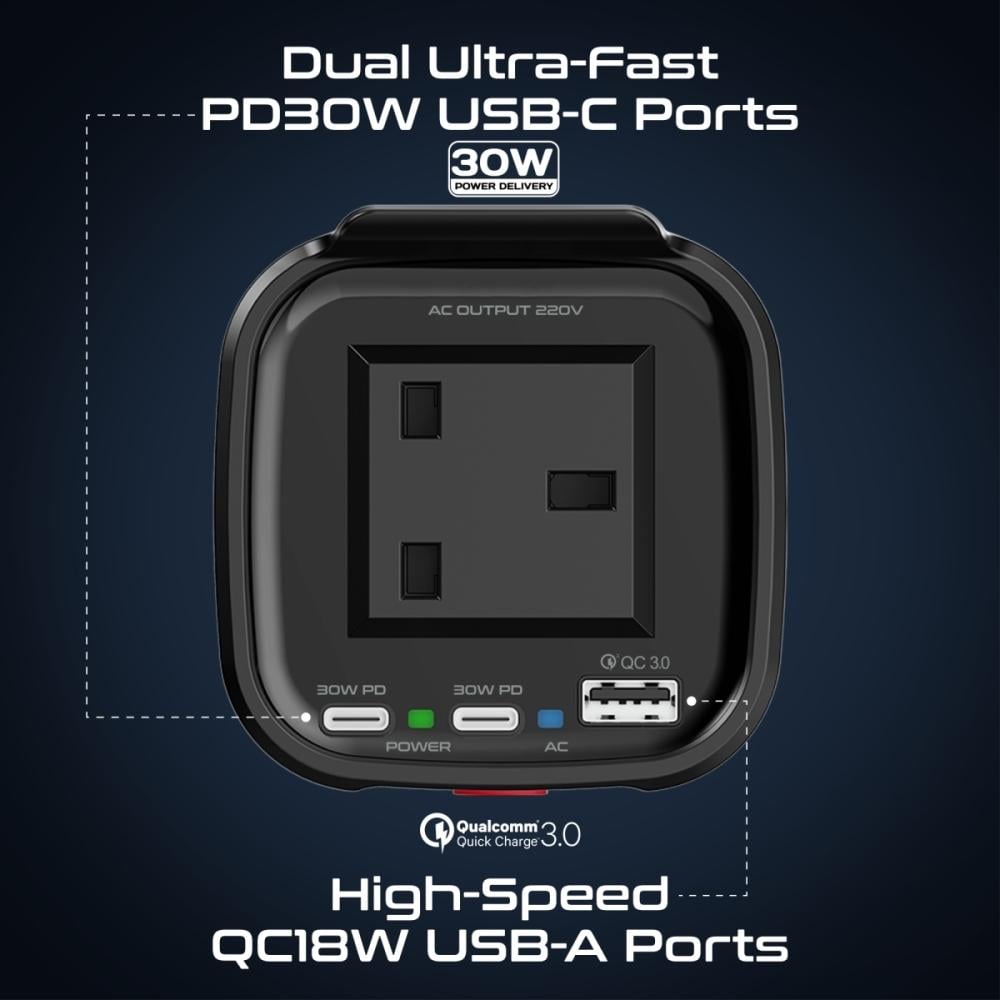 - منافذ USB-C مزدوجة بقوة 30 واط تدعم الشحن السريع لجميع أجهزتك الحديثة