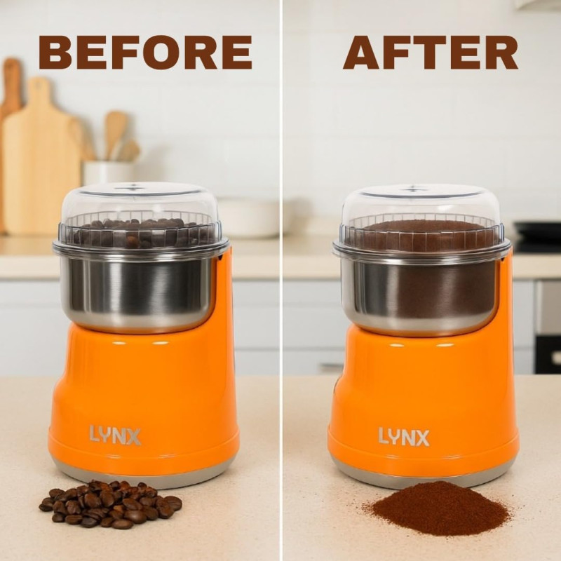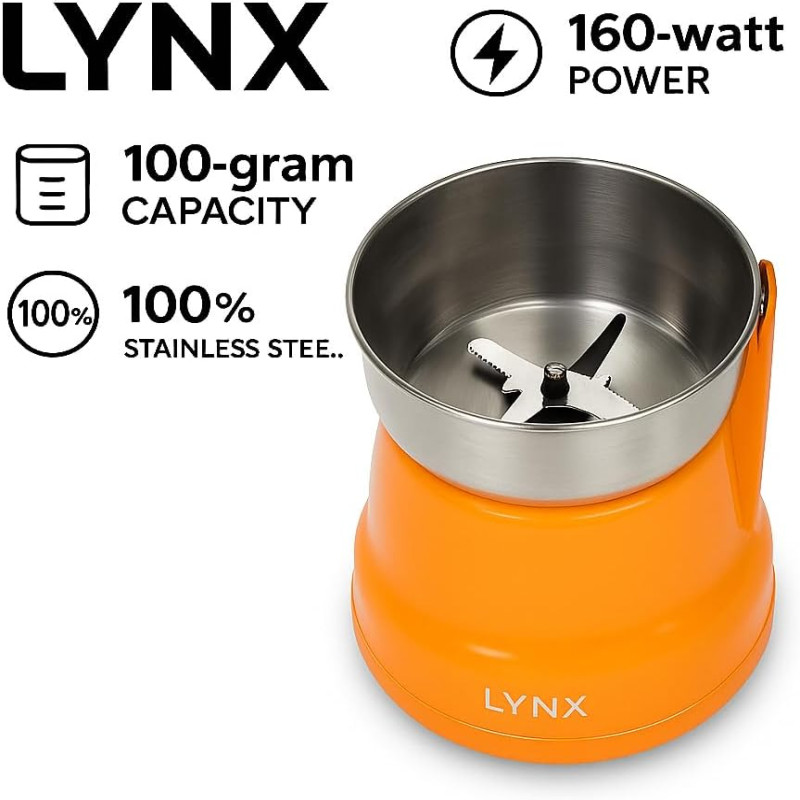 مطحنة قهوة لينكس بمحرك نحاسي كامل تمنحك كفاءة عالية وعمر أطول. تأتي بوعاء وشفرات من الفولاذ المقاوم للصدأ لضمان المتانة وسهولة التنظيف، مع الحفاظ على نكهة القهوة الأصلية دون أي تأثير من الروائح أو الطعم.